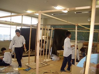 昨年度のまた別のクラスは一からポールを作って柱と梁を作り上げていました。