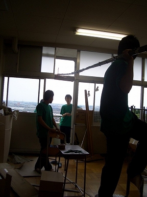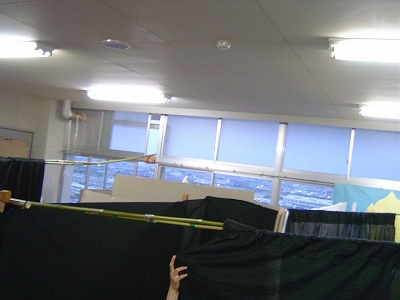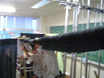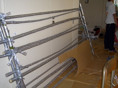ということで昨年度のこのクラスは竹を利用して教室全体に柱をたて、仕切りを生み出していました。